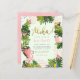 Invitación al cumpleaños de oro tropical de Aloha Hawaii verde presupuesto. ¡No podemos esperar el verano! Celebra tu día especial con esta encantadora invitación a la fiesta de cumpleaños tropical. El diseño se compone de unas hermosas piñas doradas, flamencos bonitos, hojas de monastera dorada, sandías, unicornios, un tucán y un loro. Te invitan a un Sweet de 16" (tu nombre) con letras modernas y agradables de fondo verde pastel. Haga clic en el botón "personalizar" para añadir sus propios detalles y llevar a casa la invitación perfecta para su día especial.