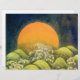 Elegante, colorido paisaje marino con sol amarillo, olas de mar en vivos colores negro, verde y blanco re-elaborados de una antigua miniatura japonesa. Amaterasu es parte del ciclo del mito japonés y también una deidad importante de la religión Shinto. Ella es la diosa del sol, pero también del universo. El nombre Amaterasu deriva de Amateru que significa "brillar en el cielo". El significado de su nombre completo, Amaterasu-ōmikami, es "el gran kami de agosto (dios) que brilla en el cielo". Para Amaterasu también se le atribuye la invención del cultivo del arroz y el trigo, el uso de gusanos de seda y el tejido con el telar.