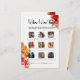 "Amor en el primer espritz" ¿Dónde estaban los juegos de novias? | Divertido Citrus Pareja de Viajes Haga un delicioso viaje a través de la historia de amor de la pareja con nuestro encantador "Love at First Spritz" Where Were Nodal Game! Esta deliciosa carta de juegos complementa perfectamente su temática "Love at First Spritz", con vibrantes naranjas de cítricos, vegetación fresca y exuberantes elementos botánicos. Es la actividad interactiva ideal para traer risas y nostalgia reconfortante a su celebración. Este juego de ducha de novia "Where Were They" está diseñado para atraer a los invitados y provocar maravillosas conversaciones sobre las aventuras de la pareja juntos. El alegre diseño de cítricos combina a la perfección con la estética general de la ducha, creando un ambiente cohesivo y acogedor para su evento. A los invitados les encantará adivinar la ubicación de varios hitos o momentos memorables en la relación de la pareja (por ejemplo, "¿Dónde se conocieron por primera vez?", "¿Dónde estuvo su primer beso?", "¿Dónde propuso?"), haciendo dulces revelaciones y momentos memorables. Es una manera fantástica de celebrar el viaje de la pareja y un divertido desafío para todos los asistentes. Personalizar fácilmente este juego de ducha de novias agregando los nombres de la pareja o un mensaje personalizado. La tarjeta de juego proporciona espacios numerados para que los huéspedes puedan anotar sus estimaciones de ubicación, correspondientes a las fotos numeradas o a las indicaciones que proporcionarán. Puede personalizar los tipos de letra, los colores y el diseño para que se correspondan perfectamente con el tema y la paleta de colores únicos de su ducha. Elija entre la variedad de tipos de papel de alta calidad de Zazzle para una sensación de calidad. Coordinar estas hermosas tarjetas de juego "Love at First Spritz" Donde Where Were Bridal Game con sus invitaciones, el cartel de bienvenida y otros diseños de papel de fiestas para una celebración perfectamente cohesiva y memorable para la futura novia. Haga clic en "Personalizar Now" para personalizar su "Love at First Spritz" Where Were Bridal Game y añadir un toque de recuerdos de viaje divertidos a su ducha nupcial! Me encanta el primer torbellino donde estaban, el juego de ducha de cítricos de novia, donde estaban los partidos de boda, la actividad de ducha de novia con temática naranja, el juego de viaje de pareja divertida, el personalizado "where was", el juego de ducha botanical bridal juego de ducha de boda, juego de fiesta personalizado, juego de ducha de novia