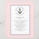 Invitaciones a la boda azul y blanca de la marina rosa de la bandera floral de temática náutica