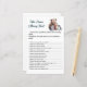Prueba el conocimiento de tus invitados de la futura mamita con esta deliciosa tarjeta de juego "¿Quién sabe mejor mamá?". Diseñado con nuestro encantador tema "A Little Snowflake is on the Way", esta actividad cuenta con delicados cristales de nieve y nuestros queridos y acogedores animales de invierno (oso, zorro, lobo, pingüino), lo que lo convierte en el lugar perfecto para su decoración de invierno con una ducha para bebés. Cómo jugar: antes de la ducha, la futura mamita responde secretamente a todas las preguntas de la tarjeta. Durante la ducha, los huéspedes rellenan sus propias tarjetas, tratando de coincidir con las respuestas de mamá. Una vez que todo el mundo ha terminado, mamá revela sus respuestas, y los invitados cuentan sus respuestas correctas. ¡La persona con las respuestas más correctas gana un premio! Este juego es una manera fantástica de celebrar a la futura madre, compartir algunas risas y aprender hechos divertidos sobre ella. ¡Una actividad fácil y atractiva para los clientes de todas las edades! Perfecto para una ducha para bebés en diciembre, enero o febrero que recibe un pequeño copo de nieve.