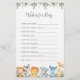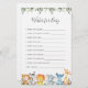 Los animales de safari con temática de la ducha de bebé desea una tarjeta de juego para bebés, cuentan con un ilustracion de animales de safari acuarela y un paisaje de eucalipto de color de agua y elegante fuente de estilo manuscrito.
