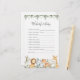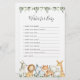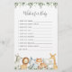 Los animales de safari con temática de la ducha de bebé desea una tarjeta de juego para bebés, cuentan con un ilustracion de animales de safari acuarela y un paisaje de eucalipto de color de agua y elegante fuente de estilo manuscrito.