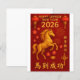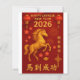 Celebre el Año del Caballo con estilo con esta elegante tarjeta de felicitación de Año Nuevo chino 2026. Con un audaz y galopante caballo de oro montado sobre un rico fondo rojo, acentuado con farolillos tradicionales, fuegos artificiales y flores de cerezo, este diseño captura el espíritu del año del Caballo de Fuego — simbolizando energía, éxito y buena fortuna. La parte delantera de la tarjeta muestra "Feliz Año Nuevo Chino 2026" junto con la frase china 馬 到 功 ("El éxito llega con el caballo"), mientras que la parte trasera de la tarjeta ofrece un refinado saludo rojo y dorado con los personajes chinos 年 快 ^ ("Feliz Año Nuevo"). Perfecto para enviar cálidos deseos a la familia, amigos, clientes y socios de negocios, esta tarjeta combina tradición con elegancia — haciéndolo un placer para ellos. Palabras clave: tarjeta china de Año Nuevo, año del caballo 2026, tarjeta de saludo de caballo de fuego, tarjeta roja y dorada de Año Nuevo Lunar, 馬 到 成, 新 快 功, tarjeta de vacaciones asiática, tarjeta china festiva, tarjeta de saludo de Zazzle