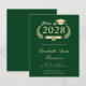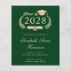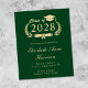 Moderno anuncio de graduación universitaria verde económico. "Clase de" está dentro de una ilustración de una corona de laurel dorada que incorpora un adorno de gorra de graduado y diploma y el nombre del graduado en elegante letra cursiva dorada clara. Agregue su escuela, especialidad, honores o planes futuros.