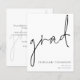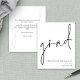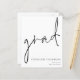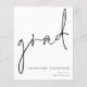 Un presupuesto con un tamaño más pequeño (4,5 x 5,6”) en semi brillo que es un papel de 110 gsm, similar en grosor a una postal. POR FAVOR TENER EN CUENTA que hay UNO por hoja. Los sobres son un extra opcional y son ligeramente más grandes que el tamaño de la tarjeta. Presupuesto de guion Anuncio de graduado Este diseño monocromo simple para anunciar las noticias de su graduado tiene un estilo de escritura a mano informal para el encabezado principal, graduado, y una tipografía fácil de personalizar en la parte inferior derecha con sus datos y también su mensaje en la parte posterior.