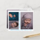 Anuncie la llegada de su bebé a sus amigos y familia con esta tarjeta moderna. El diseño tiene 3 collage de fotos en la parte delantera con caligrafía blanca "Gracias" y el nombre y los detalles del nacimiento del bebé. En la parte de atrás, tienes dos collages de fotos y tu mensaje personal. Personalice la tarjeta con sus fotos de bebés, detalles de nacimiento, notas de agradecimiento y nombres personales.