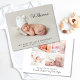 Anuncio de nacimiento de 5 fotos con presupuesto mínimo. La foto de tu recién nacido llena el frente, con "Bienvenida" en un guión contemporáneo (puedes mover este texto a otro área de la tarjeta para que se adapte a tu foto seleccionando "personalizar más lejos"). Añada su nombre, fecha de llegada y estadísticas de nacimiento. En la parte de atrás, agregue cuatro fotos familiares adicionales, un mensaje "bienvenido por" y los nombres de los padres y hermanos.