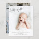 Presupuesto Vertical Simple Dos Fotografías Doble cara Minimalista Hola Mundo Recién Nacido Invitación Bebé