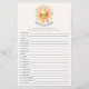 Añade un poco de sol inmoralizante a tu ducha con esta hoja de Baby Word Scramble de la colección Here Comes the Son! Un alegre sol de color agua atraviesa la parte superior, mientras que las insólitas letras de inspiración retro invitan a los clientes a descifrar una lista de palabras con temática de bebé. Es el lugar perfecto para romper el hielo y para que se echen a reír mientras se abren regalos o se sirven refrescos.