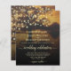 Estas simples invitaciones a la boda son rústicas encantadoras y hermosas, a la vez que son asequibles y amigables. Presentan un diseño hogareño de patio trasero con un árbol cubierto de cuerdas de luces sobre un fondo dorado de imitación marrón. La tipografía es simple pero elegante con acentos de caligrafía de escritura. Una manera económica y económica de invitar a tu familia y amigos a compartir tu alegría en tu día especial.