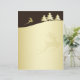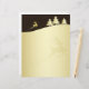 Elegante ilustracion de Navidades dorados con una silueta dorada de reno y árbol con saludo de Feliz Navidad con fondo marrón.