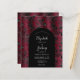 Este elegante diseño presenta una imagen de fondo humorístico de un patrón vintage de damasco floral de terciopelo falso en burdeos y negro. Personalízalo con los nombres de la novia y el novio en escritura de caligrafía gris plateada y el texto restante en una combinación de sans serif, copperplate y cursiva en forma de arco negro. En el lado inverso aparece un patrón de amortiguación correspondiente.