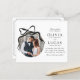 Invitaciones de boda elegantes en negro y blanco. Presentan un lazo pintado a mano con acuarela que enmarca una foto circular de la pareja a la izquierda, junto con tipografía serif atemporal y letras en escritura a la derecha. La parte trasera muestra un marco de estilo de entrada con los detalles del evento. Ideal para eventos de etiqueta o formales. Como parte de la selección de presupuesto de Zazzle, esta hoja no viene en tamaños de tarjeta estándar. Para obtener este diseño en una tarjeta estándar, puede encontrarlo en la colección o usar la máquina Zazzle Make para transferirlo a su producto preferido. Encuentre artículos coincidentes en la colección o visite la tienda para obtener más invitaciones de boda.