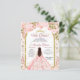 Elegante arco purpurina dorado con vestido de princesa floral para la Invitación Quinceanera de 15 años.