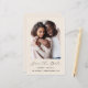 Esta sencilla y minimalista tarjeta Save the Date incluye un arco de fotos encima de las palabras "Save the Date" en un elegante guión de escritura a mano en negro, seguido por los nombres de la pareja, la fecha boda y la ciudad en letra sans serif en un fondo beige. Agregue un mensaje más detallado con información adicional en la parte posterior, junto con un código QR que sus huéspedes puedan utilizar para visitar el sitio web de su boda.