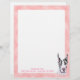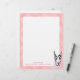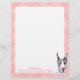 Un cachorro de Gran Danés arlequín con orejas cortadas adorna este diseño rosa.