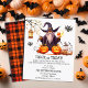 Invitación de truco o trato para toda la familia que incluye un mago, algunos murciélagos y ilustracion de fantasmas adorables. Puede personalizar esta invitación con sus detalles.