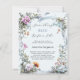 Un fondo azul claro y suave, decorado con flores silvestres rosas y azules y una cinta azul. Personalice y agregue un nombre y detalles del fiesta. Texto: Algo azul antes que yo. 1 hoja = 1 borde impreso de invitación al borde.