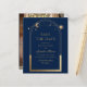 El Celestial Blue Save The Date Birthday Quinceanera Invitation presenta un marco dorado de sol, luna y estrellas sobre un fondo azul. Adentro está su personalizado Quinceanera guardar la información de fecha y al revés agregar su foto favorita. Personalice editando el texto en los cuadros de texto. Diseñado para usted por ©2024 Evco Studio www.zazzle.com/store/evcostudio