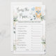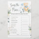 Este diseño presenta un agradable oso de Teddy con un arco azul y un globo cardíaco. Está rodeado de vegetación. Adivinen el precio del juego de Baby Shower.