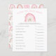 Boho arcoíris chica tarjeta de juegos para bebés con ilustraciones de arcoiris rosa pastel con estrellas. Los textos son editables. Juego perfecto para jugar durante la ducha. En él se enumeran los productos básicos para bebés y se pide a los clientes que adivinen el precio. ¡Quien adivine el precio gana más cerca!