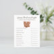 Tarjeta de juego para bebés de chica con temática de oso dulce, con ilustraciones de un cachorro rodando en el suelo con arco rosado y corazones. Los textos son editables. Juego perfecto para jugar durante la ducha. En él se enumeran los productos básicos para bebés y se pide a los clientes que adivinen el precio. ¡Quien adivine el precio gana más cerca!