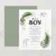 Girafa con temática de bosque silvestre, y elegante chile de safari de niños con ducha con jirafa, elefante, Relieve metalizado de oro y hojas verdes. Perfecto para las invitaciones a la ducha de bebé de un niño