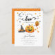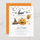 Una pequeña invitación a la ducha de calabaza de Halloween. Diseño moderno con temática de Halloween para un fiesta boo! Esta invitación a la ducha para bebés tiene calabaza, un gorra de brujas, un globo, cuernos de caramelo, una luna y estrellas. ¡Esta invitación es genial para las niñas y niños que se duchan!