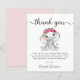 Cuidada tarjeta de agradecimiento para bebé con presupuesto reducido con "gracias" en un elegante guión gris suave con toques y una acuarela de elefante bebé adornada con flores rosas. Personalice fácilmente su mensaje de agradecimiento en una topografía gris simple o deje en blanco una nota manuscrita.