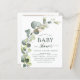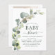 Eucalyptus Greenery Suculent Botanical Watercolor Primavera Género Neutral Niño o Niña Bebé Invitaciones a la ducha sobre fondo blanco - incluye tipografía de escritura hermosa y elegante con hojas botánicas modernas y vegetación para la celebración especial de la Madre a Ser.
