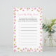 Usa nuestras tarjetas de juego de ducha de bebé con temas de polka punk rosa y purpurina dorado para que los invitados "Adivinen la comida para bebé". Ponga jarras de comida para bebés con las etiquetas cubiertas y haga que los huéspedes traten de adivinar el sabor de cada frasco usando la vista, el olor e incluso el sabor. No olvide visitar nuestra amplia selección de artículos de ducha para bebés en nuestra colección de puntos de polka purpurina.