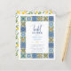Invitar a la familia y amigos a celebrar a la futura novia con esta invitación a la ducha de temática mediterránea. Una combinación clásica de limones y azulejos azules. Este estilo es popular en toda Italia, como Positano en la costa de Amalfi, la Toscana, Sicilia y las islas, así como en zonas de Grecia, Portugal y España. La parte delantera de estas tarjetas está decorada con un marco de baldosas italianas diferentes, todo ello en tonos azul marino y amarillo. El texto aparece en la caligrafía con letras a mano de moda y en la elegante tipografía serif. El nombre de la novia aparece en azul claro. Hemos elegido mostrar el nombre en letras minúsculas, pero esto puede cambiarse fácilmente. Para obtener el nombre del lugar y RSVP un poco más grande que el resto de los detalles de la ducha, usamos todas las tapas. Perfecto para un evento de primavera o verano. Un tema de cítricos es ideal para tomar un cóctel (mimosas y limoneros) o refrescos, expositores y decoración botánica, o simplemente para añadir un toque soleado a tu evento. En la parte trasera de las cartas, hay un patrón de bonito de limones acuarelas, hojas y flores. Para empezar a cambiar nombres y detalles de eventos, haga clic en "Personalizar esta plantilla" y edite la redacción en los cuadros de plantilla. Para acceder a las herramientas de edición más avanzadas, desplácese hasta "Haga clic en el personalizar más adelante". Una vez que esté en la herramienta de diseño de Zazzle, puede editar fuentes, ubicación, color, tamaño y más! Solo hay que tener en cuenta que "novia" no puede ser editada como estaba escrita a mano. Si me envías un mensaje a través del botón de abajo, estaré encantado de escribirte otra cosa, de trabajar en algo juntos, o de contestar cualquier pregunta! *ACERCA DEL PAPEL PRESUPUESTARIO* La gama de artículos de papelería tiene dos opciones: satinado: papel de 80lb delgado y semibrillante: cartón de 110lb. Recomendamos el acabado semi-brillante para una invitación más duradera, pero puedes elegir según tus necesidades. Hay más variedad con las tarjetas planas, pero no están incluidas en la selección de presupuesto. Puedes encontrarlos en mi tienda. Tenga en cuenta que las invitaciones se imprimirán y enviarán exactamente como las ve en su pantalla, y no puedo modificar un pedido existente, así que póngase en contacto conmigo antes de comprar si desea que algo cambie.