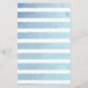 Un fondo de rayas color agua, blanco y azul, para una ducha de bebé con temática de niño. Un conejito bronceado aparece justo por encima del nombre de su homólogo.