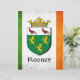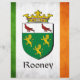 Escudo de armas de la familia Rooney sobre fondo de bandera irlandesa angustiado
