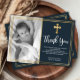 Presupuesto, elegante bautizo azul marino y bautismo gracias a las cartas. Envíe gracias a la familia y amigos con esta moderna tarjeta plana personalizada de agradecimiento. Presenta el guión con letras a mano "Gracias", alrededor de un marco doble de Relieve metalizado de oro falso sobre fondo marino. Esta moderna y hermosa tarjeta de agradecimiento para fotos también será perfecta para bautismo / bautizo / ceremonia de nombres / confirmación y sagrada comunión tarjeta de agradecimiento para niño o chica.