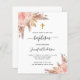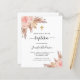 Un fondo blanco. Decorada con oro rosa y flores rosadas, rosas, pampas y cruz dorada. Personalice y agregue un nombre y detalles.