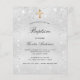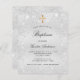 Una invitación moderna, elegante y minimalista al bautismo para niños y chicas. Fondo de aspecto metálico falso plateado decorado con polvo falso purpurina. Personalice y agregue un nombre y detalles. Letras de color negro.
