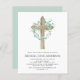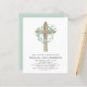Eucalyptus y Invitaciones al Bautismo Religioso Cristiano de Budget Sage Green Boy y Wooden Cross Botanical Greenery Watercolour.