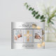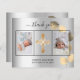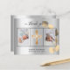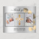 Añade 2 o 3 de Tus fotos, tamaño vertical, una fecha, nombre y la nota de agradecimiento. Un fondo falso plateado con texto y marco negro, un eucalipto dorado. El texto: Gracias en la parte delantera y tu nombre en la parte trasera está escrito con un elegante guión con letras a mano con barras.