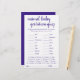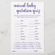 Prueba de embarazo gestacional animal ducha de bebé o juego de fiesta revelado por sexo (con respuestas a continuación) con un divertido y casual guión florido a mano. CLAVE DE RESPUESTA: Cerdo-122, Kangaroo-37, caballo-336, gato-63, conejo-33, elefante-645, pato-28, oveja-148, vaca-284, ballena-360, león-108, perro 63, Mouse-20, Giraffe-419, Bear-220, Chimpanzee-243, Goat-150 Para otros colores o productos que coincidan, por favor visite la tienda JustFharryn Zazzle, o póngase en contacto con el diseñador, c/o Fharryn@yahoo.com Todos los derechos reservados. #zazzlemade