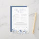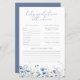 Añada un toque de corazón a su bebé en una ducha de bebé en flor con este juego Blue Baby In Bloom Baby Predictions and Advances (Predicciones y consejos para bebés azules), una forma bonita y significativa de involucrar a sus invitados. Diseñada con un suave azul, florido y flores silvestres, esta encantadora tarjeta de consejo sirve de regalo para los futuros padres. Los huéspedes pueden compartir sus mejores deseos y sus divertidas o reflexivas suposiciones en este interesante juego de predicciones para bebés, creando recuerdos duraderos durante la ducha de bebé. Una adición perfecta a tu colección de juegos de ducha para bebés, que complementa maravillosamente a tu bebé con el tema de la floración.