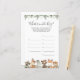 Los animales de bosque con la temática de la ducha de bebé adivinen lo que hay en la tarjeta de juego de bolsos tiene una acuarela de ilustracion de animales de bosque y agua verde eucalipto garland y elegante fuente de estilo manuscrito.