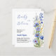Un fondo blanco moda. Decorado con flores silvestres de azul. Personaliza y agrega el nombre de la madre para ser y los detalles del fiesta. Texto: Bebé en flor. 1 hoja = 1 borde impreso de invitación al borde.