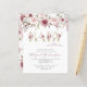 Esta invitación a la ducha dulce para bebés cuenta con un borde superior de flores color burdeos y rosa oscuro. Debajo, las palabras "bebé en flor" aparecen en letras de oro adornadas con ramos de borgoña y rubor, con las palabras "en flor" en el elegante guión de escritura a mano en burdeos debajo. Personalice el texto con el nombre de la futura madre en escritura burdeos y los detalles en el tipo de letra sans serif gris carbón sobre fondo blanco. La parte posterior de la tarjeta está decorada con un diseño floral burdeos y ruidoso.