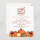 Un fondo blanco. Decorado con calabazas y flores naranjas y amarillas. Personalice y agregue los detalles del fiesta. Guión de texto: Agradecido y bendecido. 1 hoja = 1 borde impreso de invitación al borde.