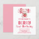 Primer Fiesta del primer cumpleaños de la fresa de la Berry de presupuesto. Un precio económico menor de 4,5 x 5,6" y semibrillo de 110 libras, similar en grosor a una postal. Hay UNA por hoja. Berry First Birthday está en un guión moderno. Personalice fácilmente el resto de las palabras según sea necesario. Con un lindo oso de peluche, fresa y ilustracion de globos.