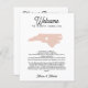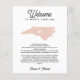 Una de las mejores maneras de hacer que sus huéspedes se sientan especiales es una carta de bienvenida boda incluida en los regalos de bienvenida de su boda. Comparte un mensaje de bienvenida para tus invitados bodas de CAROLINA del NORTE, así como un itinerario o calendario de los eventos del fin de semana. Front muestra su mensaje de bienvenida con un mapa de siluetas del estado de CAROLINA del NORTE con un corazón adentro. La combinación de estilos actual en cursiva y serif hace que este programa sea realmente excepcional. Todos los estilos de texto, colores y tamaños también se pueden modificar para adaptarlos a sus necesidades. ¡¡EL COLOR ESTATAL Y CARDÍACO ES EDITABLE!! Para obtener ayuda o solicitar personalizado (sin cargos), póngase en contacto con nosotros en citronelladesign@gmail.com o visite nuestra tienda
