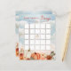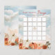 ¡Una calabaza pequeña está en camino y es muy emocionante! Este diseño de "Bingo" de Baby Shower presenta flores coordinadoras de caída dispuestas en un ramo con calabazas naranjas quemadas, blancas y grises. Todo sobre un cielo de color de agua rústico y fondo de tierra. Diseño compuesto por Holiday Hearts Designs.