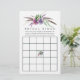 Tarjetas de bingo de despedida de soltera de plantas suculentas de moda con plumas boho personalizables para los detalles de su evento.